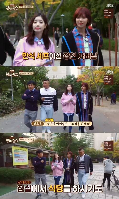 11월 8일 방송된 JTBC '한끼줍쇼'는 트와이스 정연과 다현이 게스트로 출연, 송파구 잠실동에서 한 끼에 도전하는 모습이 그려졌다.
