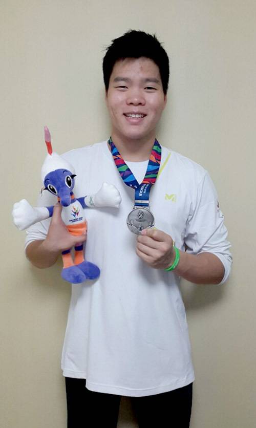| 김씨가 2014년 인전 장애인 아시안게임에서 수영 자유형 400m 은메달을 딴 뒤 밝게 웃고 있는 모습. |
