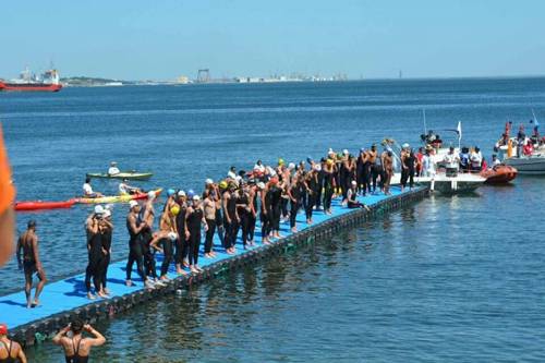 | 지난해 6월 2016 리우 하계올림픽 수영 마라톤 최종 예선전에 나서 각국 비장애인 대표선수들과 함께 출발을 준비하는 김씨의 모습이 보인다. 김씨 제공 |