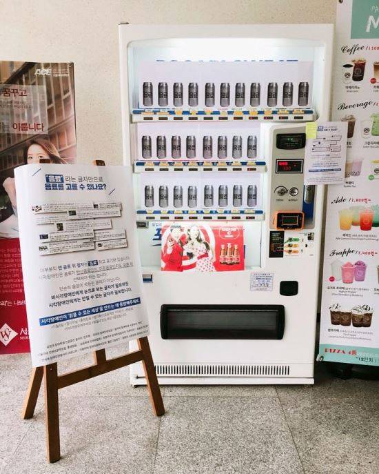 서울여자대학교 인권프로젝트팀 ‘훈맹정음’은 시각장애인들이 느낄 이런 불편함에 주목했다. 훈맹정음 측은 11월 4일 점자의 날을 맞아 교내 자판기 10의 음료에, 이름에 맞는 점자 스티커를 부착하는 캠페인을 벌였다. 자판기를 이용하는 사람들이 자판기에 붙어있는 점자와 음료 캔 위 점자를 직접 비교할 수 있도록 한 것이다.