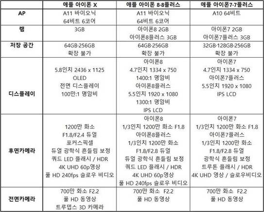 운영체제(OS)도 애플 모바일OS ‘iOS11’로 같다. AP와 OS는 스마트폰의 성능을 좌우하는 가장 중요한 하드웨어(HW)와 소프트웨어(SW)다.