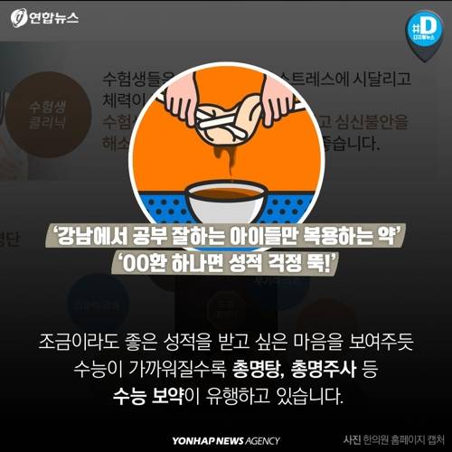 조금이라도 좋은 성적을 받고 싶은 마음을 보여주듯 수능이 가까워질수록 총명탕, 총명주사 등 수능 보약이 유행하고 있습니다.