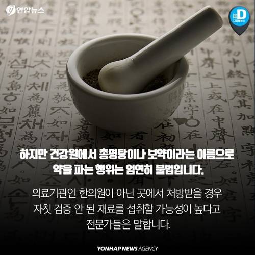 하지만 건강원에서 총명탕이나 보약이라는 이름으로 약을 파는 행위는 엄연히 불법입니다.