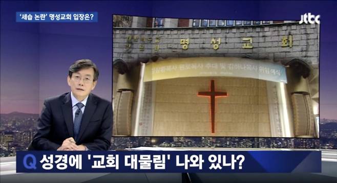 | ▲ 14일 방송된 'JTBC뉴스룸'은 2부 시간 대부분을 명성교회 세습 논란에 할애 했다. |