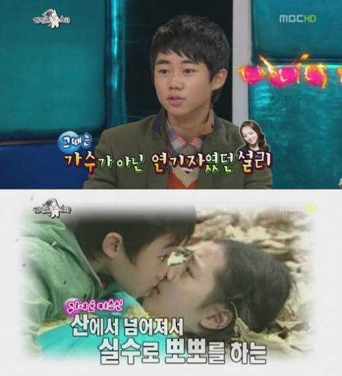 그는 “‘반전드라마’에서 설리와 함께 연기를 한 적이 있는데 산에서 넘어져 실수로 설리에게 뽀뽀를 하는 장면이었다”고 설명했다. 이어 "설리와의 뽀뽀 장면때문에 남자팬들에게 욕을 많이 먹었다"고 말했다.