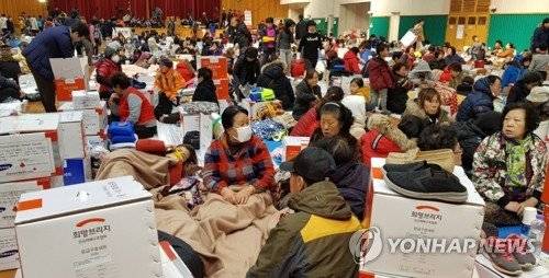 | (포항=연합뉴스) 이덕기 기자 = 포항 지진으로 피해를 본 시민들이 흥해 체육관에 대피해 있다. 2017.11.16 duck@yna.co.kr /사진=연합뉴스 |