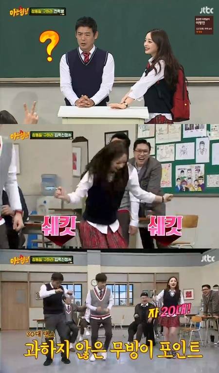 구하라는 기다렸다는 듯이 그룹 카라의 노래 '미스터'에 맞춰 춤을 췄다. 옆에 보고있던 성동일은 "50대 댄스를 보여주겠다"라며 무릎만 살짝 흔드는 춤을 선보여 폭소를 자아냈다.