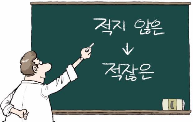 그중 ‘적잖은/적쟎은’도 자주 틀리는 말 가운데 하나다. 몇 해 전 대입수능시험에 나와 수험생들을 당황케 한 이 말은 ‘적잖은’이 바른 표기다. 하지만 많은 이들이 이를 ‘적쟎은’으로 알고 있는데, 거기엔 까닭이 있다. 한글맞춤법 36항에는 모음 ‘이’ 뒤에 ‘-어’가 와서 ‘-여’로 줄 적에는 준 대로 적는다는 규정이 있다. ‘견디다’의 과거형은 ‘견디+었+다’인데 이게 줄어들어 ‘견뎠다’로 적는 게 그런 사례다. ‘막히어→막혀’ ‘버티어→버텨’ ‘잡히었다→잡혔다’가 모두 그렇게 줄어든 것이다. 즉 ‘-이’와 ‘-어’가 어울려 줄면 ‘-여’로 되는 것이다.