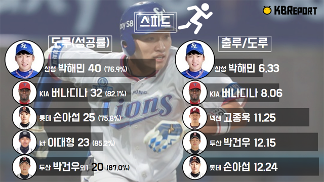 더불어 그의 스피드가 당대를 넘어 역대급 반열에 오를 만하다는 것 역시 증명했다. 그가 달성한 3년 연속 도루왕은 과거 김일권, 정수근, 이대형 등 역대 최고의 대도들만이 달성한 대기록. 앞서 ‘대도’ 선배들이 그랬듯, 누상에 나가기만 해도 상대 배터리를 흔들어놓는 위력을 과시했다.