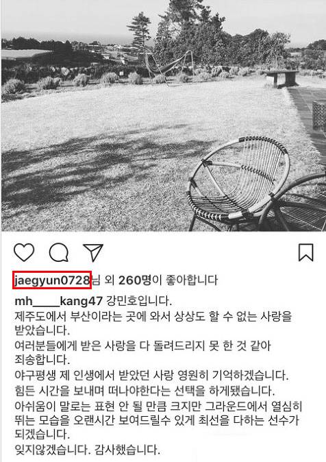 21일 삼성과 4년 80억원에 FA(자유계약선수) 계약을 마친 강민호는 인스타그램을 통해 “제주도에서 부산이라는 곳에 와서 상상도 할 수 없는 사랑을 받았다. 여러분들에게 받은 사랑을 다 돌려 드리지 못한 것 같아 죄송하다”는 글을 남겼다.