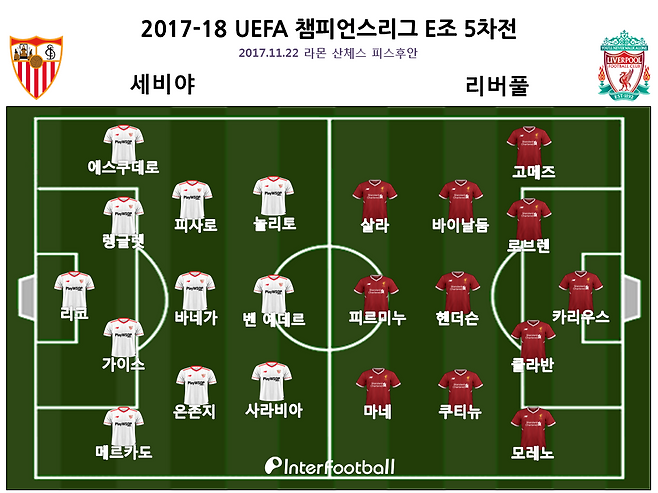 리버풀은 22일 오전 4시 45분(한국시간) 스페인 세비야에 위치한 라몬 산체스 피스후안에서 열린 세비야와의 2017-18 유럽축구연맹(UEFA) 챔피언스리그(UCL) E조 조별리그 5차전 경기에서 3-3으로 무승부를 거뒀다.