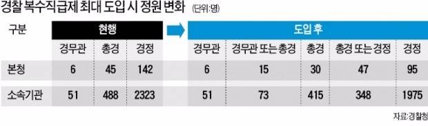 이는 현재 경찰과 군을 뺀 전 부처에서 운영되고 있다. 이종수 연세대 행정학과 교수는 “경찰에 복수직급제가 도입될 경우 총경 등 특정 직급에 대한 과도한 인사 수요를 해소할 수 있고 인력을 유연하게 관리하는 방안이 될 것”이라고 내다봤다.