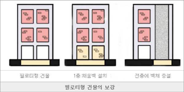 정광량 한국건축구조기술사회 회장은 “국내 필로티 건축에선 하층 주차장 기둥은 기둥식인데 상층 주거용 공간은 벽식으로 돼 있는 경우가 많다”며 “구조상 하부가 약하기 때문에 지진같은 횡력이 오면 큰 충격을 받는 것”이라고 말했다. 그의 설명에 따르면 1999년 대만 치치 지진 때에도 필로티 건축물 피해가 컸다. 지진이 잦은 미국 서부 샌프란시스코 등에서는 내진보강을 할 때 필로티 건물들을 우선순위로 꼽는다.