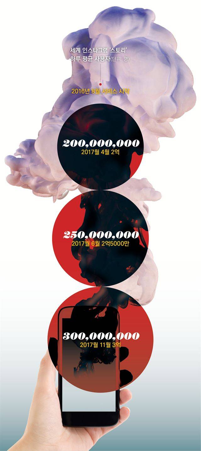 27일 글로벌 사진ㆍ동영상 SNS 인스타그램에 따르면 지난해 8월 인스타그램 안에 넣은 ‘스토리’ 기능 일일 이용자가 11월 들어 3억 명을 돌파했다. 스토리는 게시물이 24시간 후 사라지는 간단한 기능이다. 올해 4월 처음으로 2억 명을 넘어선 이후 7개월 만에 1억 명이 더 늘었다.