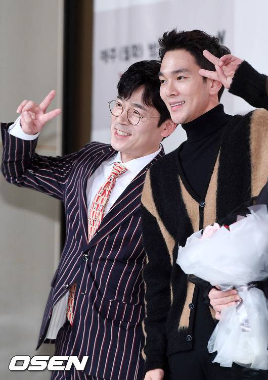 [OSEN=민경훈 기자] 28일 오후 서울 영등포구 타임스퀘어 아모리스홀에서 열린 tvN '막돼먹은 영애씨 16'(정형건 PD) 제작발표회서 이승준 이규한이 포토타임을 갖고 있다./ rumi@osen.co.kr