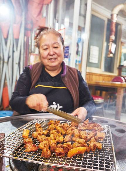 앞산에 왔다면 멀지 않은 안지랑곱창골목을 가 봐야 한다. 한 바가지(500g)에 1만2,000원. 가성비 최고다. 대구 곱창이 유명해진 것은 고령, 김천, 창녕 등 인근 도축장에서 공급하는 싸고 신선한 재료 덕분이라는데 안지랑에서는 재료를 공동구매한다. 하지만 누린내를 제거하는 방법과 소스의 비법은 60여 개 식당마다 다 다르니 두루 맛보며 감별해 보자. 곱창과 자웅을 겨루는 대구 명물이 치맥이라면, 그 아성의 지류에는 닭똥집튀김이 있다. 원조집 ‘삼아통닭’을 시작으로 1972년부터 형성됐다는 평화시장 닭똥집골목에는 점심부터 새벽까지 고소한 튀김 냄새가 진동한다. 메뉴 발전사는 통닭과 비슷하다. 튀김에 이어 양념똥집, 간장똥집, 누드똥집, 파똥집까지 나왔다. 오늘밤 똥맥 한잔 어떠신가?