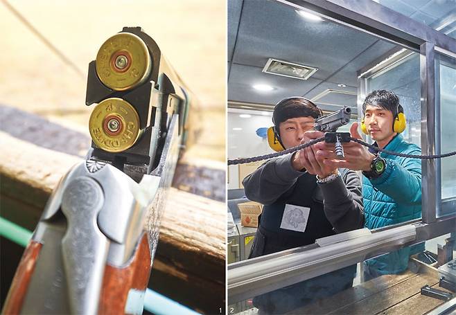 1 클레이 사격에서 사용하는 총과 산탄 2 권총 사격은 집중력과 차분함을 요한다. 특히 호흡을 가다듬는 것이 중요하다