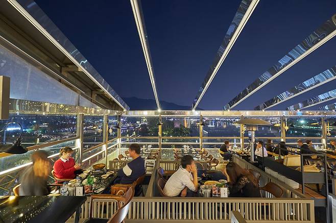 “왜 이름이 천상인가요?” “하늘이 열려요. 열어 봐 드릴까요?” 버튼을 누르자 천장이 주르륵 움직였다. “못 보고 가는 줄 알았는데, 열렸네요!” 뒤돌아보니 막 계산을 마치고 나가려면 중년의 여인이 활짝 웃고 있었다. 빌딩 4층에 위치한 이자카야 천상은 스카이어닝을 여는 순간 테라스 바로 변신하는 곳이다. 싱싱한 회부터 스테이크, 나베요리에 사케, 칵테일에 연어회 등등 안주의 범주 또한 하늘만큼 넓다. 아래층에 일본식 선술집 ‘소노마마’도 함께 운영하고 있다.