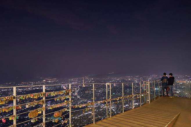 현재 앞산이 지닌 압도적인 장점은 전망이다. 엄밀히 말해 전망대가 2개 있는데, 하나는 케이블카 정상부의 옥상이고, 다른 하나는 걸어서 10분 정도 거리에 있는 비파산 정상500.5m 전망대다. 물론 대구 야경을 더 가까이서 볼 수 있는 비파전망대가 더 인기다. 케이블카를 타지 않고 야간 트레킹으로 올라오는 사람들도 꽤 있다. 83타워가 기준점처럼 손을 높이 들고 있으니 어디가 어딘지 금방 눈에 들어온다. 케이블카의 막차 시간은 현명하게도 탄력적이다. 주말과 공휴일에는 일몰 후 2시간을 보장한다. 그만큼 앞산 야경은 볼 가치가 충분하다는 이야기다.