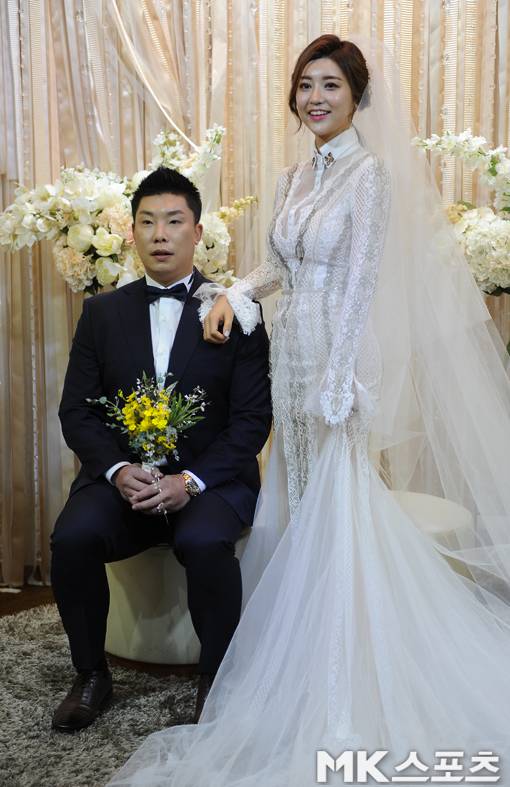 나지완과 신부 양미희 씨가 포토타임을 갖고 있다.