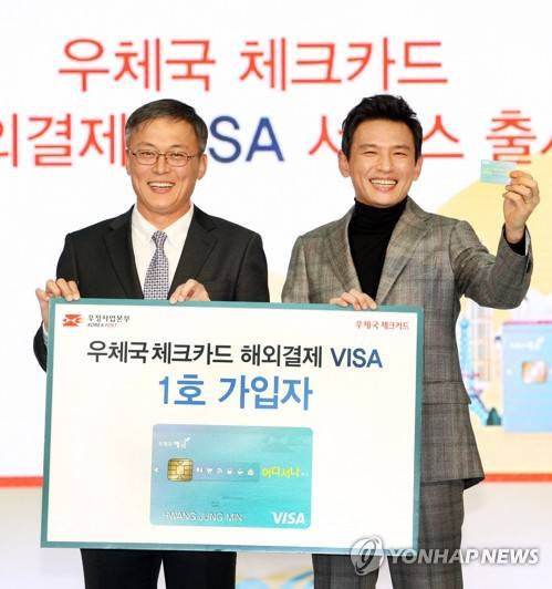 (서울=연합뉴스) 우정사업본부가 5일 인천국제공항에서 전 세계 VISA 가맹점에서 우체국체크카드를 사용할 수 있는 '우체국 체크카드 해외결제서비스' 출시 기념식을 열었다.