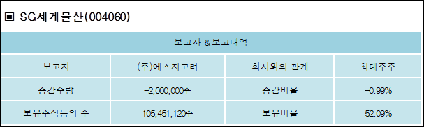 [ET투자뉴스][SG세계물산 지분 변동] (주)에스지고려 외 1명 -0.99%p 감소, 52.09% 보유