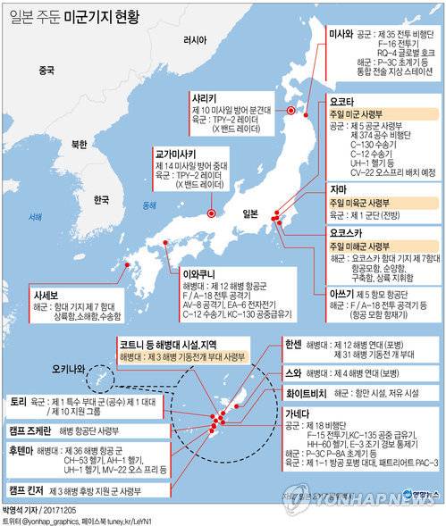 [그래픽] 일본 주둔 미군기지 현황
