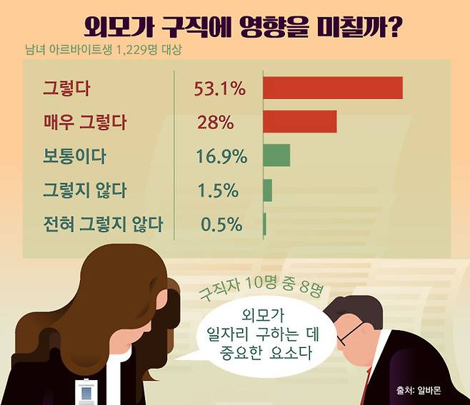■ 구직자 10명 중 8명, "외모가 일자리를 구하는 데 영향 준다"