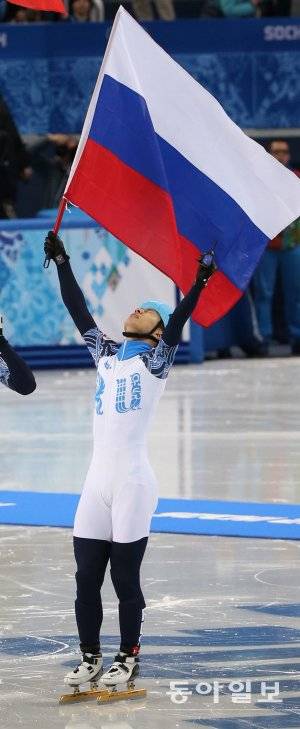 | 2014 소치 올림픽 때 남자 쇼트트랙 1000m에서 금메달을 딴 뒤 러시아 국기를 들고 있는 빅토르 안(32·한국명 안현수). 소치=변영욱 기자 cut@donga.com |