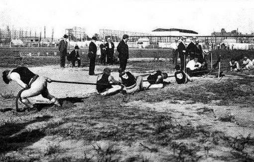 | 1904년 세인트루이스 올림픽 때 열린 줄다리기 경기 장면. 줄다리기는 1920년 안트베르펀 올림픽 때까지 정식 종목이었습니다. IOC 홈페이지 |