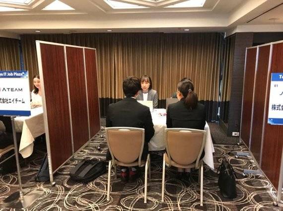 | 코트라가 지난 11월 13일 일본 도쿄에서 '코리아 IT 엑스포'를 개최했다. 이날 열린 취업 박람회에서 한국 취준생들이 일본 기업과 면접을 진행하고 있다. /사진=fnDB |