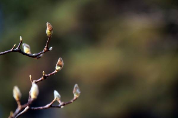 | ▲ 합천 옥전고분군에서 만난 목련 겨울눈이 꽃필 봄을 기다리듯 무덤은 우리에게 천 년 전의 이야기에 귀를 기울여 들어보라 권한다. |