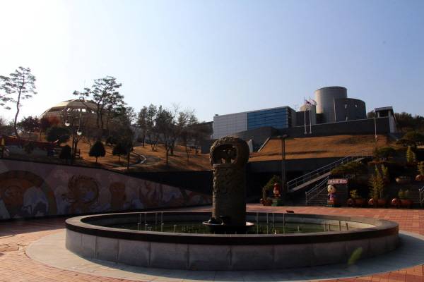 주차장에서 나와 박물관 쪽으로 향하다 먼저 만난 조형물이 '마음에 정원'이다. 한때는 이곳은 다라국의 신성한 정원이라는 생각에 마음이 경건해진다. 박물관 정면에 용봉문양 고리자루 큰 칼(龍鳳文環頭大刀) 분수대가 반긴다. 찬찬히 살펴보는 재미가 색다르다.