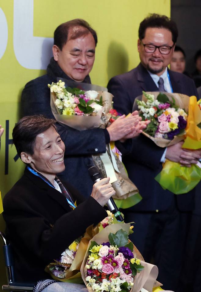 이용마 MBC 기자, 휠체어 타고 첫 출근.."복직, 꿈 같다"