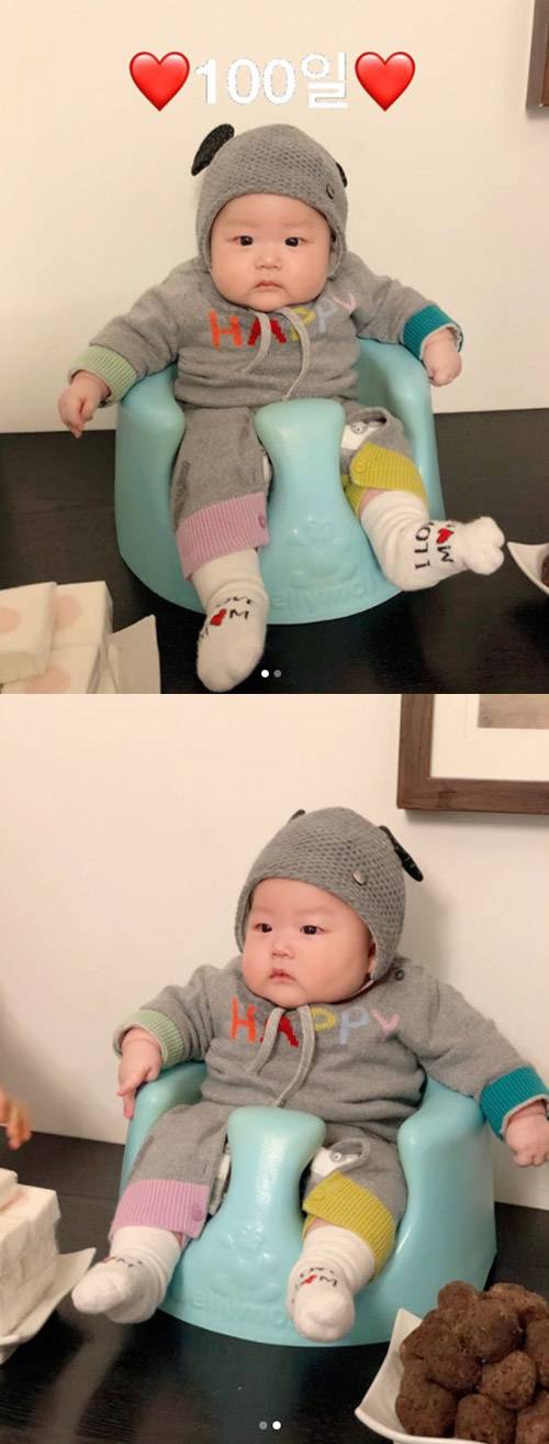 두 장의 사진도 함께 올렸다. 사진 속에는 귀여운 옷차림으로 의자에 앉아 있는 아들 장하다 군의 모습이 담겨 있다. 똘똘한 눈망울과 앙증맞게 주먹을 꽉 쥔 두 손이 눈길을 끌었다.