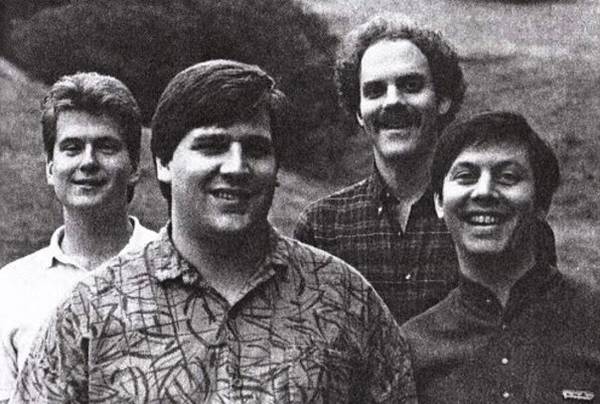 | [원숭이섬의 비밀 1, 2편 개발의 주역들] 좌에서부터 Carl Mey, Ron Gilbert, David Fox, and Gary Winnick (이미지 http://www.usgamer.net/articles/use-questions-on-developer-a-ron-gilbert-retrospective/page-2) |