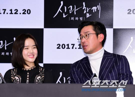 12일 오후 서울 송파구 롯데시네마 월드타워점에서 영화 '신과 함께-죄와 벌' 언론시사회가 열렸다. 배우 김향기와 하정우가 기자회견을 갖고 있다.