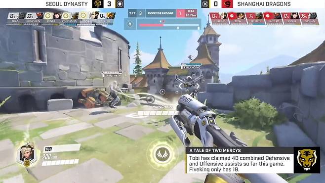 그리고 ‘플레이의 데이터화’는 e스포츠가 가장 유리한 분야다. 여기서는 기록원도 필요 없고, 수치가 틀릴 일도 없다. 이번 프리시즌에 블리자드는 킬·데스·상대방에게 가한 데미지 등의 기록을 화면에 표시하거나, 유의미한 지표를 문자로 중계했다. 서울과 상하이의 맞대결 도중 “‘파이브킹’ 자오유 첸이 메르시로 19개의 어시스트를 기록하는 동안 ‘토비’ 양진모는 48개의 공·수 어시스트를 기록했다”고 알린 게 그 예다. 오버워치 리그는 분명 기록·통계의 무궁무진한 가능성을 인지하고 있었다.