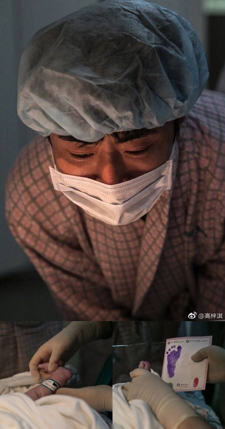 공개된 사진에는 감격스러움을 감추지 못하고 있는 가오쯔치의 모습이 담겨 있다. '선물'이라고 표현한 2세의 앙증맞은 발에 연신 아빠 미소를 짓고 있다.