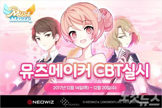 ㈜네오위즈(대표 이기원)는 자사가 서비스하고, ㈜트웰브모먼츠(대표 전영욱)에서 개발한 신작 모바일 리듬게임 ‘뮤즈메이커’가 20일까지 비공개 시범 테스트(이하 CBT)를 진행한다고 밝혔다.