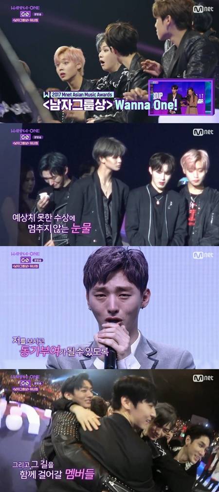 이날 워너원은 '남자 그룹상'을 수상했고, 이름이 불리자마자 멤버들은 깜짝 놀란 모습을 감추지 못했다. 뜻밖의 수상에 감격한 멤버들은 눈물을 흘렸다. 수상 후 무대를 내려온 윤지성은 제작진과 인터뷰에서 "그냥 남자 그룹상을 떠나서 다른 분들이 저를 보시고 동기부여가 될 수 있도록 좋은 사람이 되어야겠다 생각했다"며 성숙한 면모를 보였다. 이어 강다니엘은 "연습생 때 혼자 눈물을 많이 흘려서 데뷔 후에는 안 울어야겠다 결심했다"며 "그런데 상상하지 못한 상을 받으니까 눈물이 나더라"라고 털어놨다.