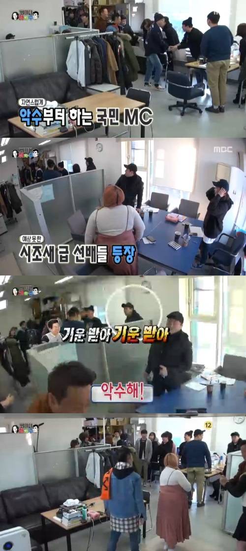 "악수해!"..'무도' 멤버들 '코빅' 회의실 방문 '유느님 영접'