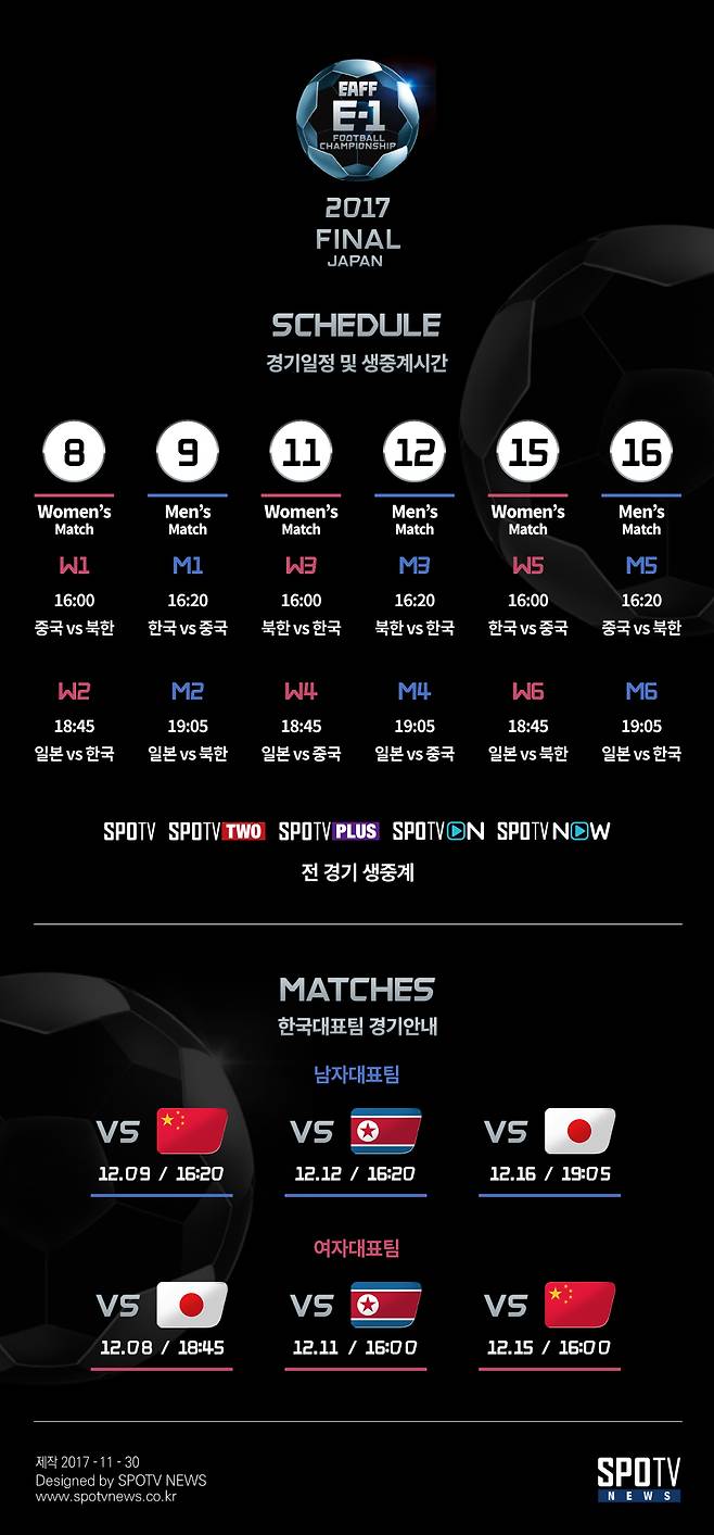 한국 남자 축구대표팀은 16일 일본 도쿄 아지노모토스타디움에서 열린 2017 동아시안컵(EAFF E-1 풋볼 챔피언십) 3차전 일본과 경기에서 4-1로 역전승을 거뒀다. 2승 1무를 기록하며 우승을 차지했다. 대회 2연패다.