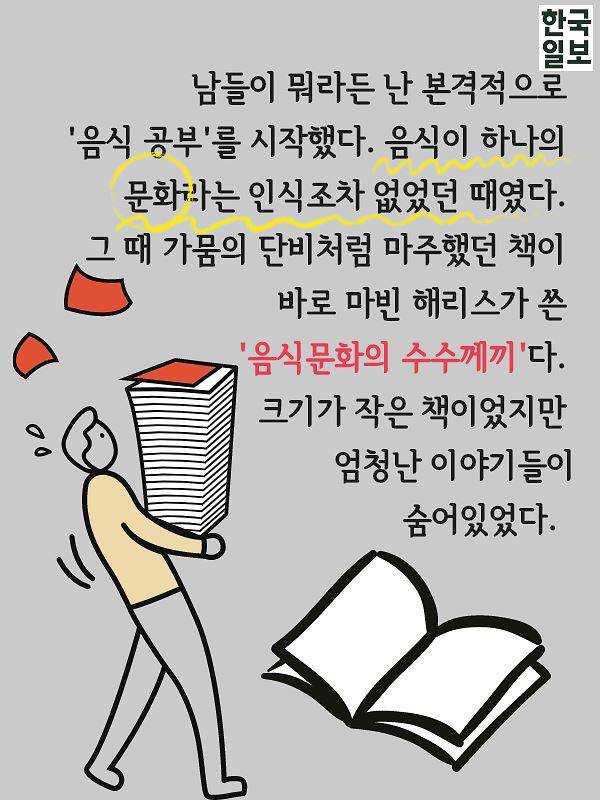 남들이 뭐라든 난 본격적으로 ‘음식 공부’를 시작했다. 음식이 하나의 문화라는 인식조차 없었던 때였다. 그 때 가뭄의 단비처럼 마주했던 책이 바로 마빈 해리스가 쓴 ‘음식문화의 수수께끼’다. 크기가 작은 책이었지만 엄청난 이야기들이 숨어있었다.