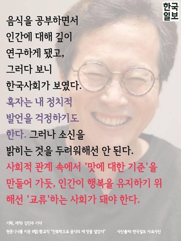 원문: [나를 키운 8할] 황교익 “인류학으로 음식의 제 맛을 알았다”(http://www.hankookilbo.com/v/cbb781a400d64e68b9e7a63c9292e152)
