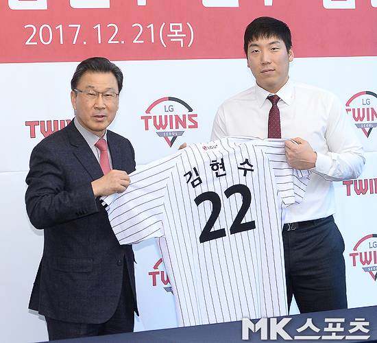 [매경닷컴 MK스포츠 = 옥영화 기자] LG 트윈스 김현수 입단식 및 공식 기자회견이 21일 서울 그랜드콘티넨탈호텔 메이플홀에서 열렸다.
