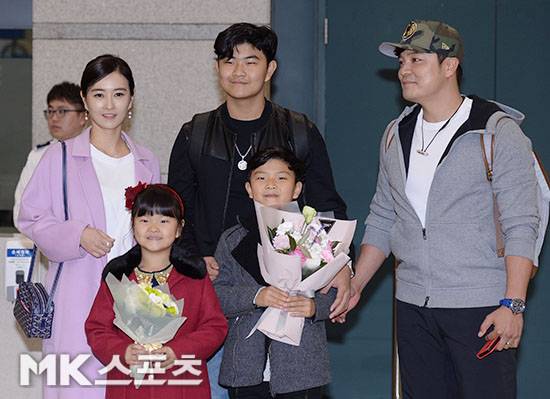 추신수가 가족들과 함께 입국장을 빠져 나오고 있다.