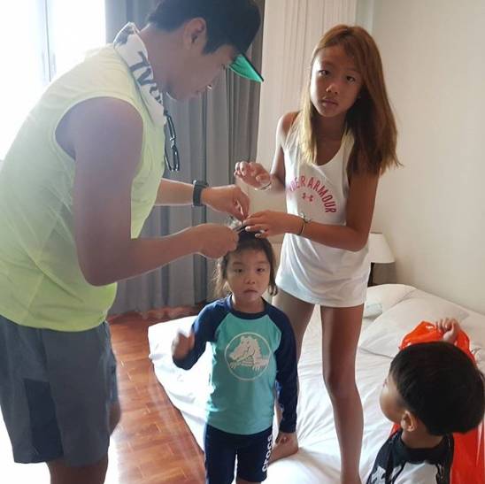 축구선수 이동국은 12월 24일 자신의 인스타그램에 사진을 게재했다. 사진에는 드라이 빗으로 인해 머리가 엉켜 울상을 짓고 있는 설아, 그런 설아의 머리를 수습 중인 아빠 이동국과 재시 시안(대박)의 모습 등이 담겨있다.