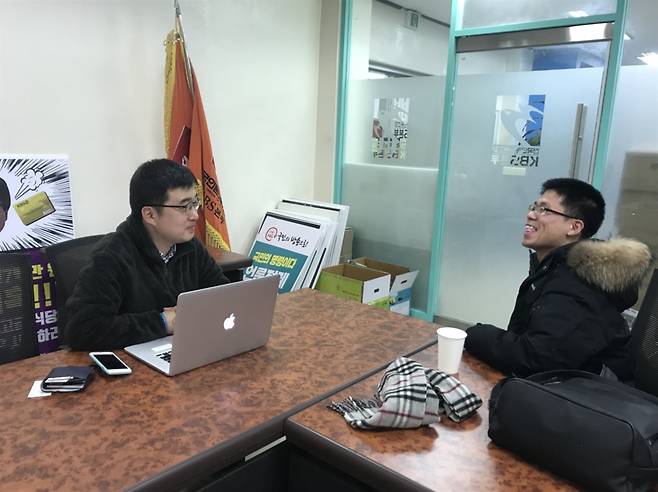 "조합원들이 처음에는 반대가 좀 있었죠. 이 아이디어의 실현 가능성에 대해서 저희 스스로도 의구심이 있었어요. 20분씩 10일만 한다고 해도 720명의 사람이 필요해서 어렵다는 주장이 있었습니다. 그런데 막상 시작하고 보니 예상 못 했던 일들이 일어났죠. 한 후배조합원이 단체카톡방에 '여러분이 자원을 해주시면 여러분의 동료가 추위에서 떠는 시간이 줄어들 수 있습니다'라는 글을 남긴 뒤로 선후배들이 서로 자원을 해서 10분, 20분, 30분씩 나눠서 하게 되었습니다."