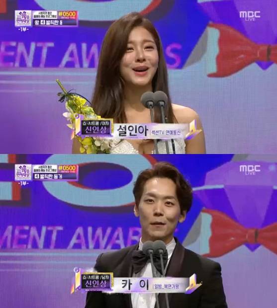 29일 방송된 MBC ‘2017 MBC 연예대상’에서는 설인아와 카이가 쇼·시트콤 부문에서 신인상을 수상했다.